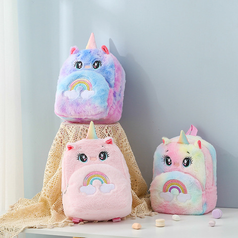 MSYO nuovi cartoni animati unicorno bambini borse da scuola graziose arcobaleno Tie Dye zaino in peluche per ragazze