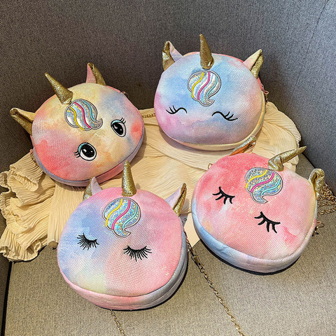 MSYOキッズカラフルぬいぐるみタイダイ電話コイン収納バッグ女の子のための猫漫画アニマルユニコーンをフィーチャーしたファッションアクセサリー